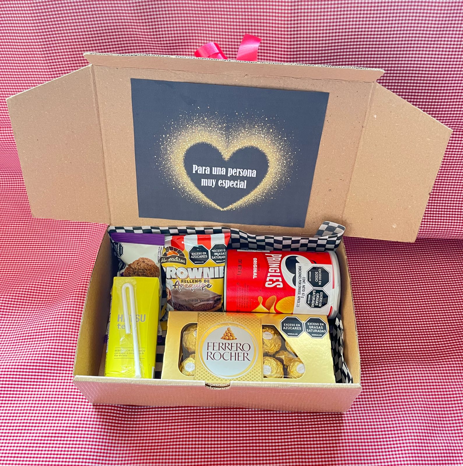 Té hatsu, galletas, ponque, papas pringles pequeñas, chocolates ferrero por 8 unidades